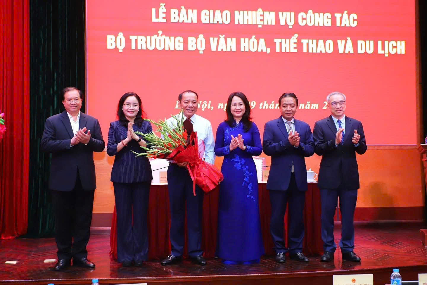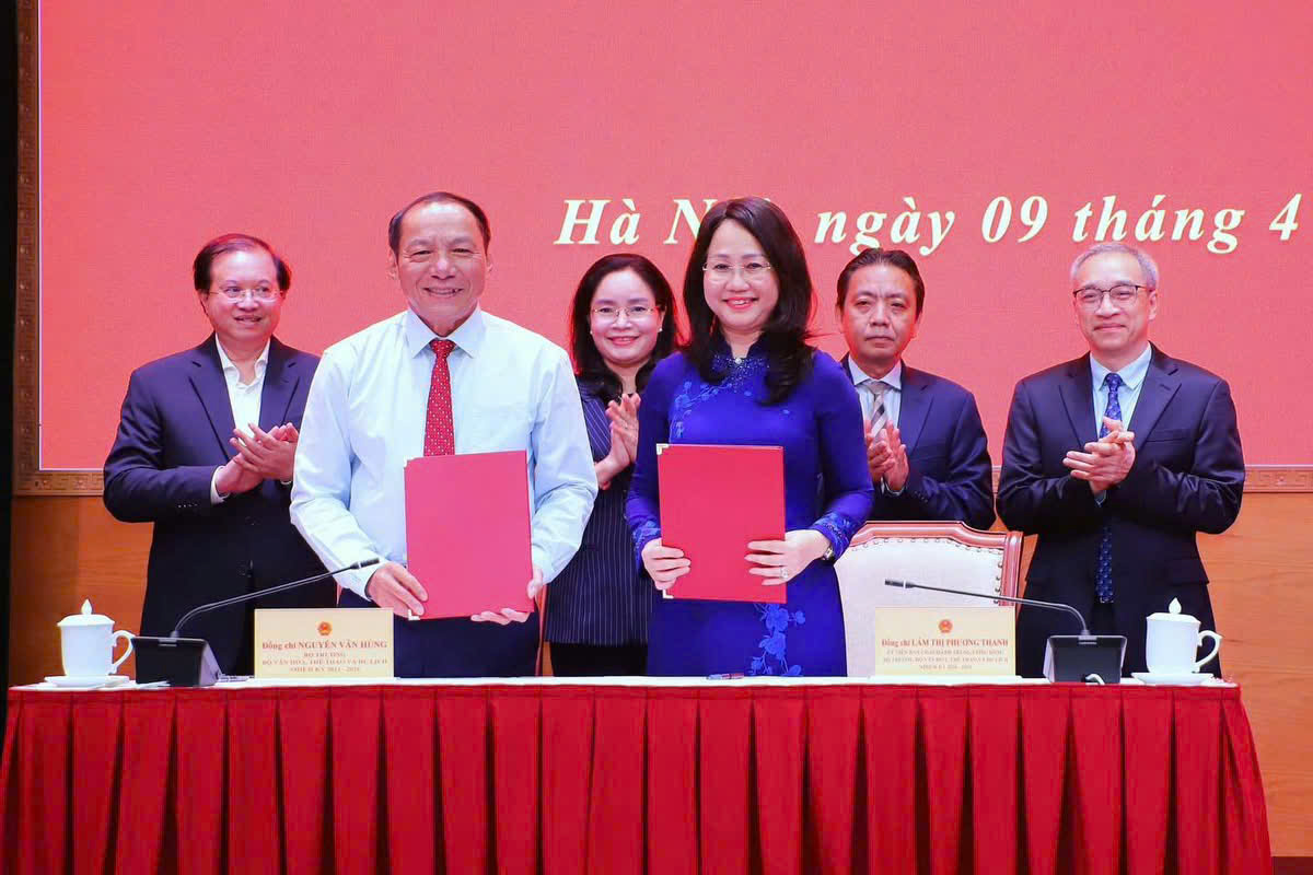 Chiều 9.4.2026, Bộ Văn hóa, Thể thao và Du lịch tổ chức Lễ bàn giao nhiệm vụ Bộ trưởng giữa Ủy viên Ban Chấp hành Trung ương Đảng khoá XIII, Bí thư Đảng ủy, Bộ trưởng Bộ Văn hóa, Thể thao và Du lịch nhiệm kỳ 2021-2026 Nguyễn Văn Hùng và Uỷ viên Ban Chấp hành Trung ương Đảng khoá XIV, Bí thư Đảng uỷ, Bộ trưởng Bộ Văn hoá, Thể thao và Du lịch nhiệm kỳ 2026-2031 Lâm Thị Phương Thanh.