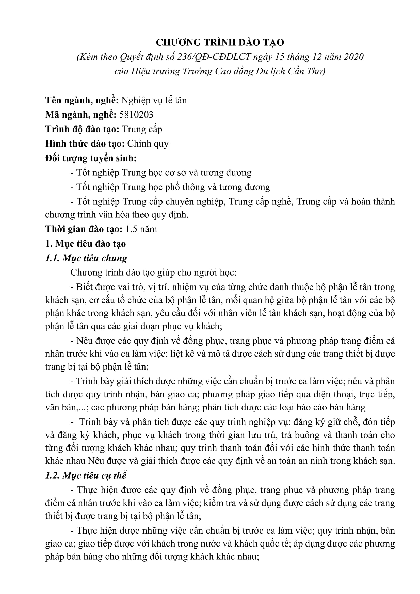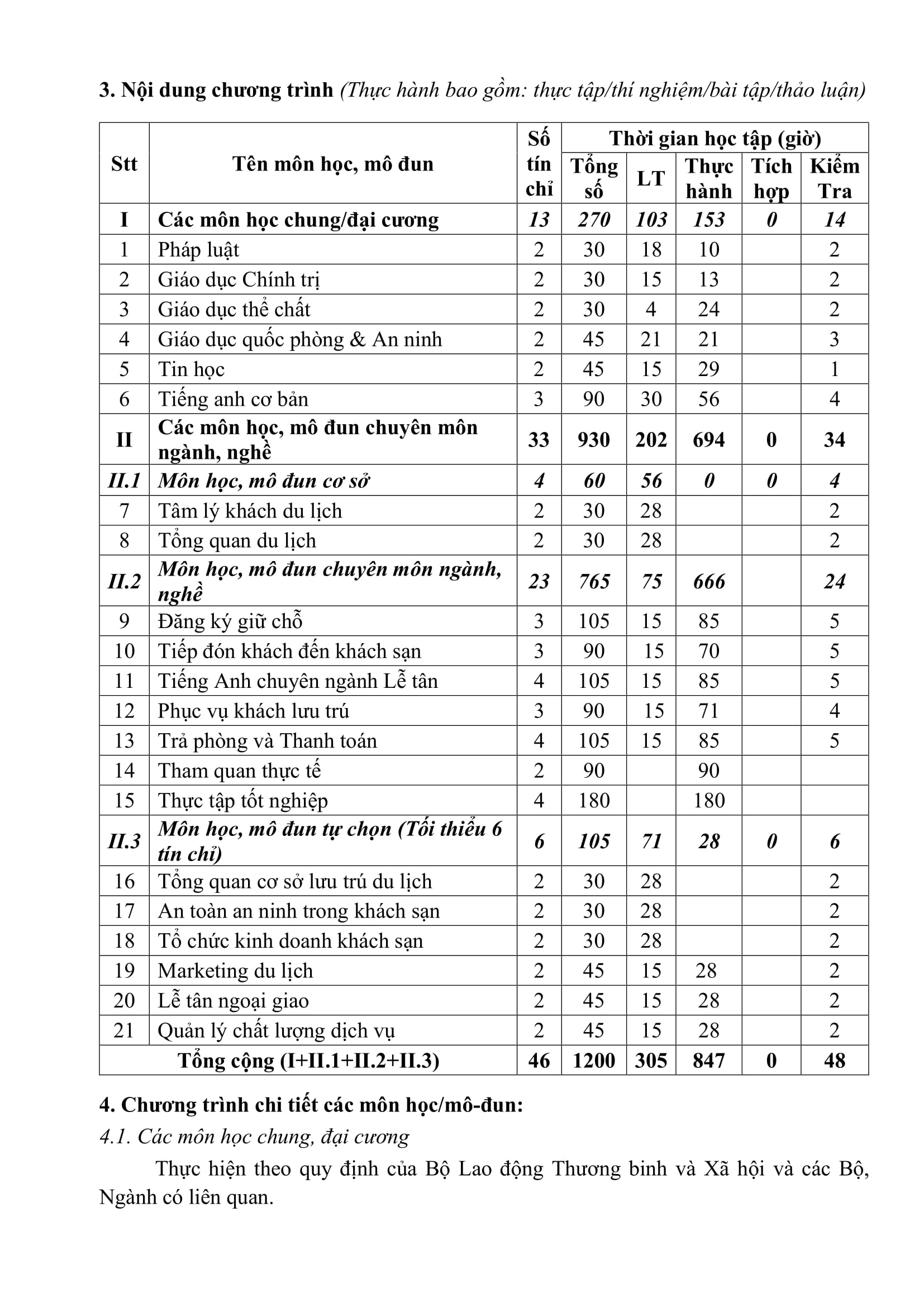 Chương trình đào tạo ngành QTLH (Cao đẳng)