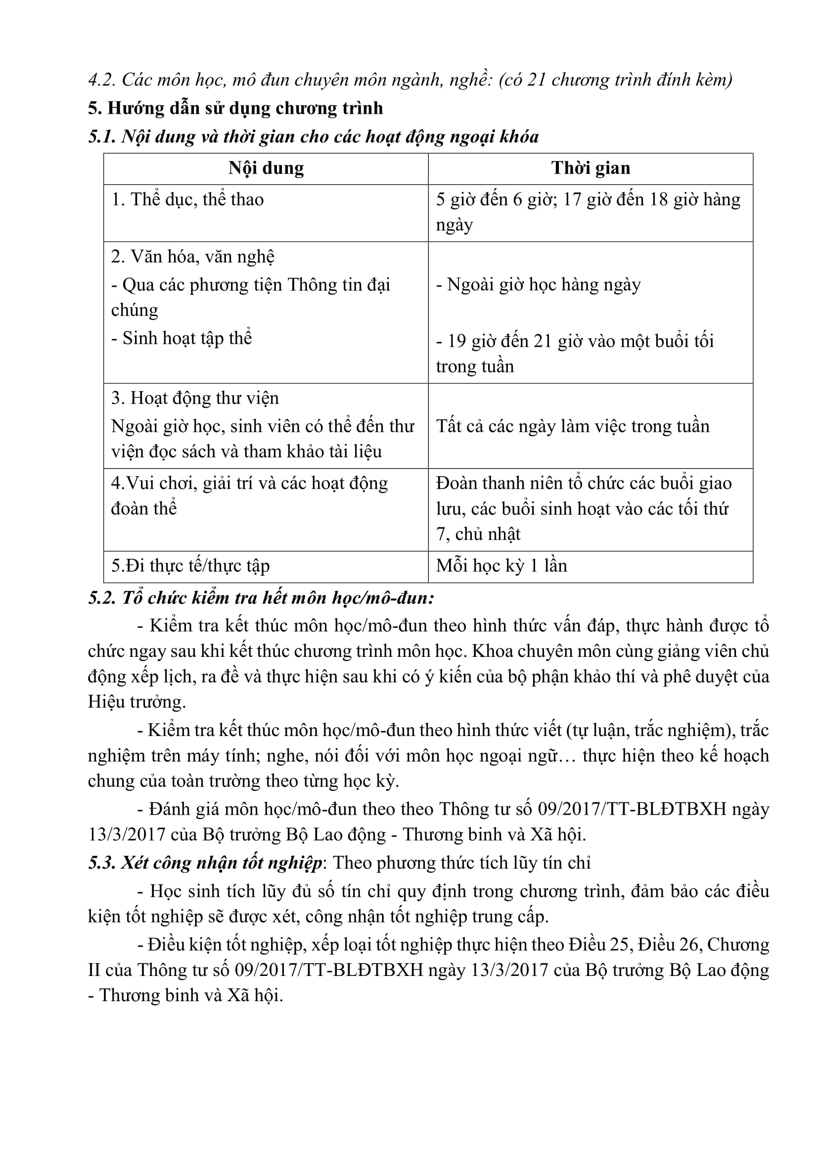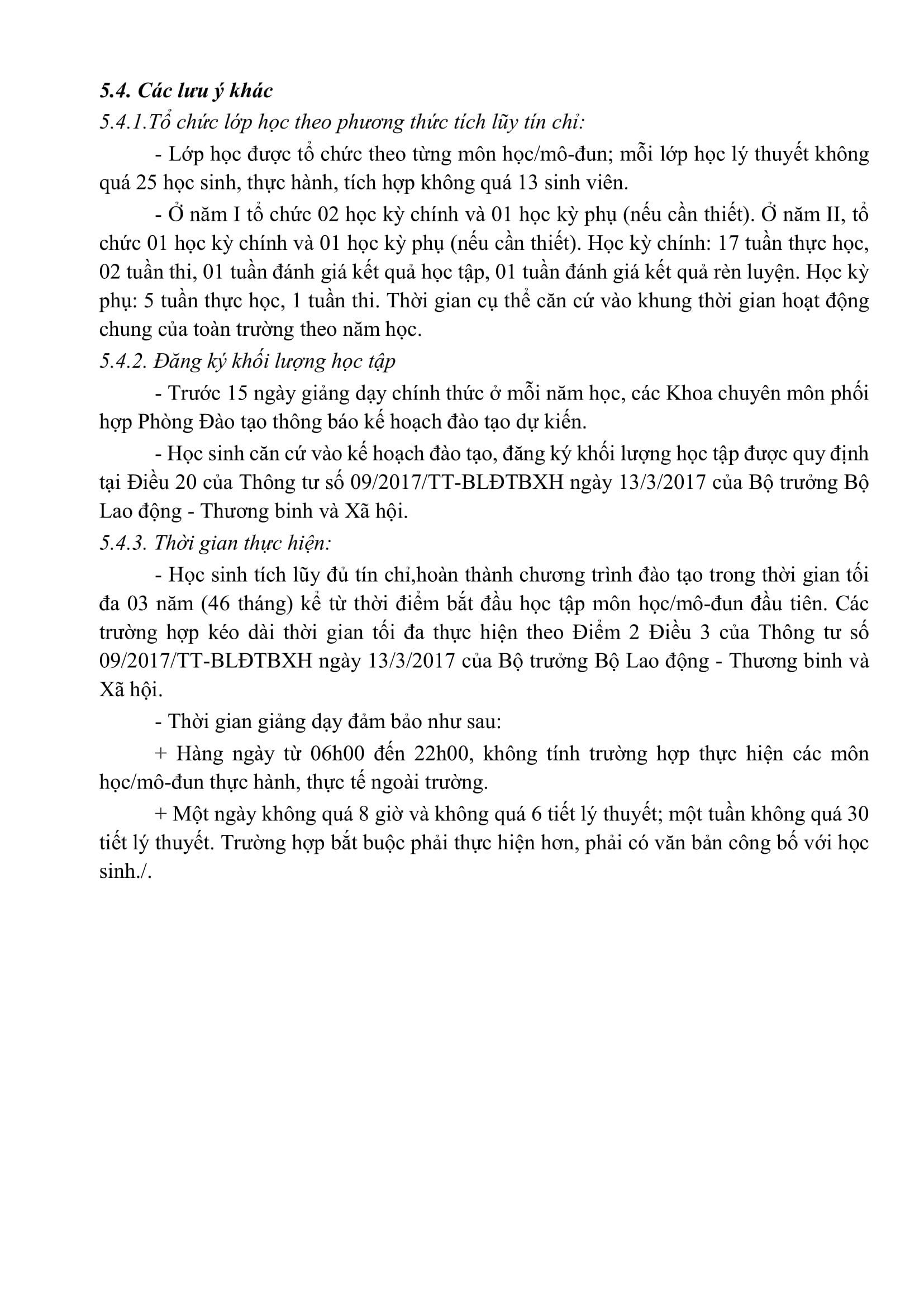 Chương trình đào tạo ngành NVLT (Trung cấp)