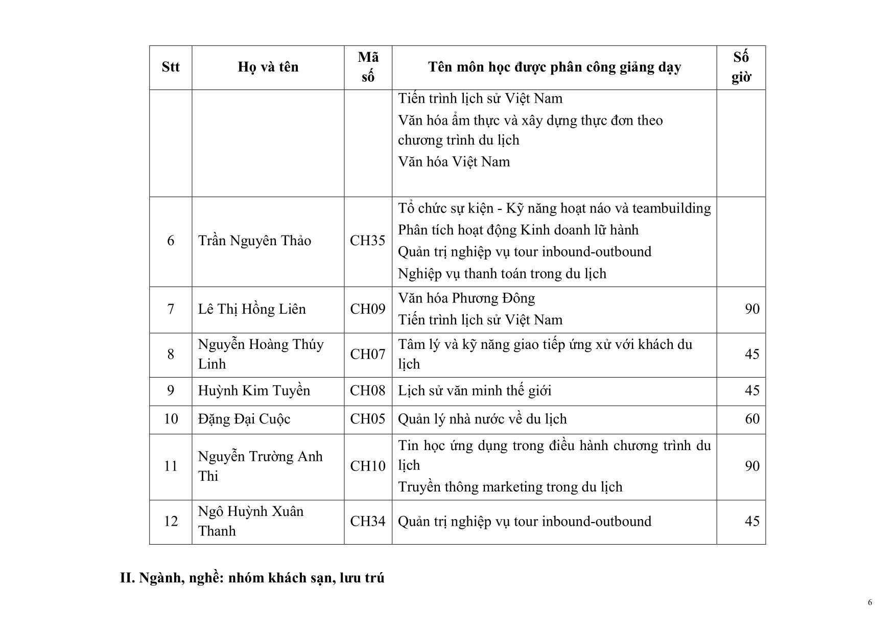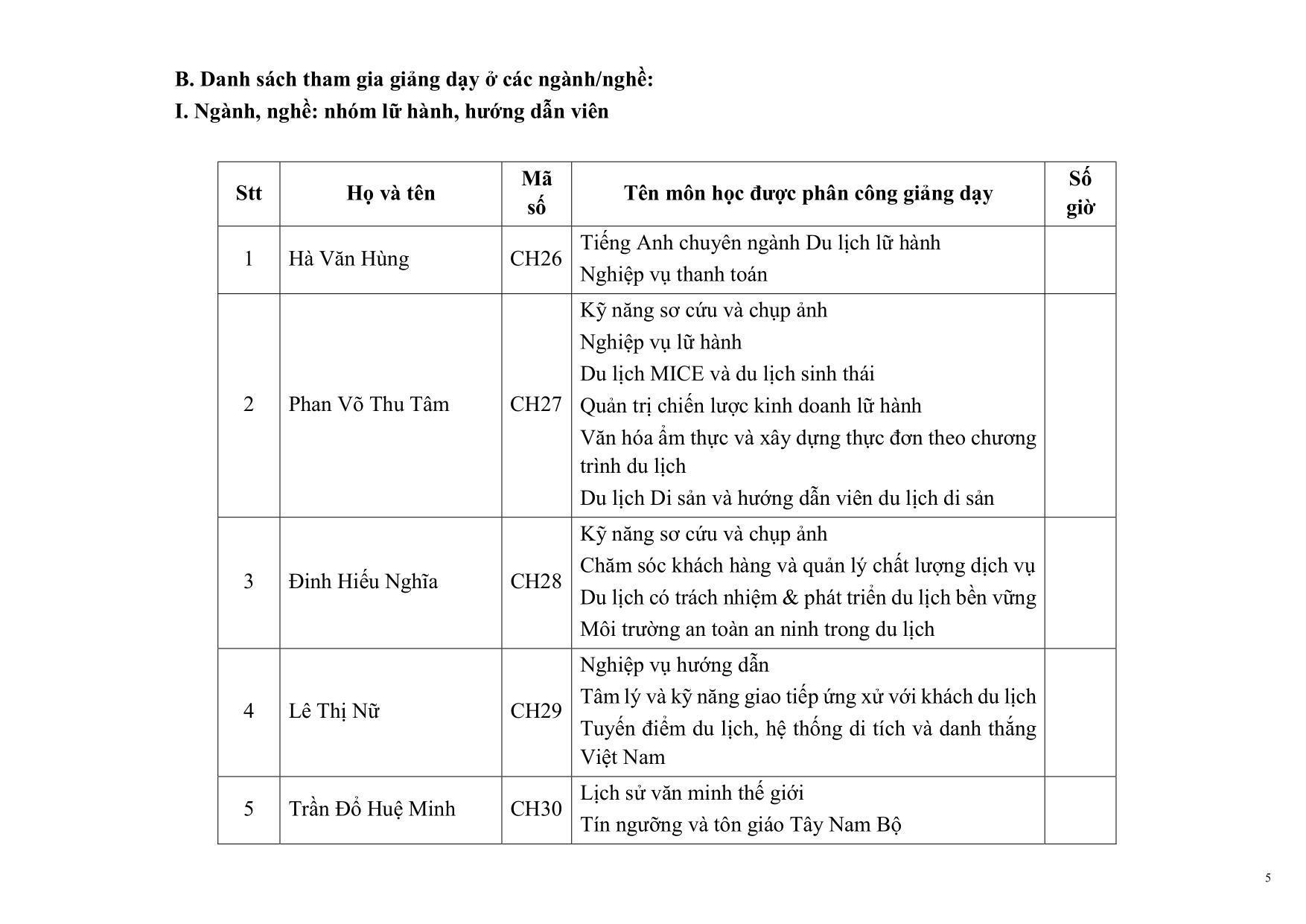DANH SÁCH NHÀ GIÁO THỈNH GIẢNG