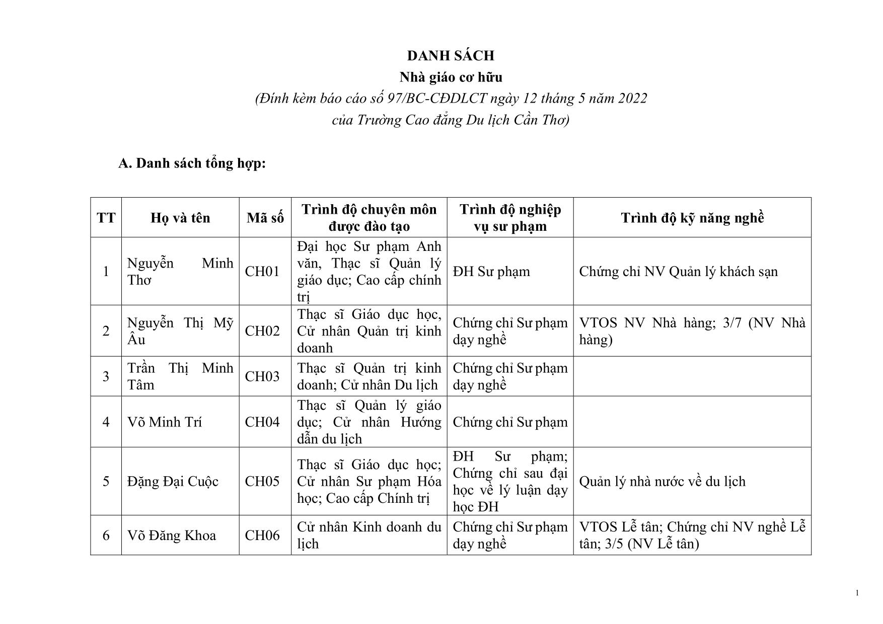 DANH SÁCH NHÀ GIÁO CƠ HỮU
