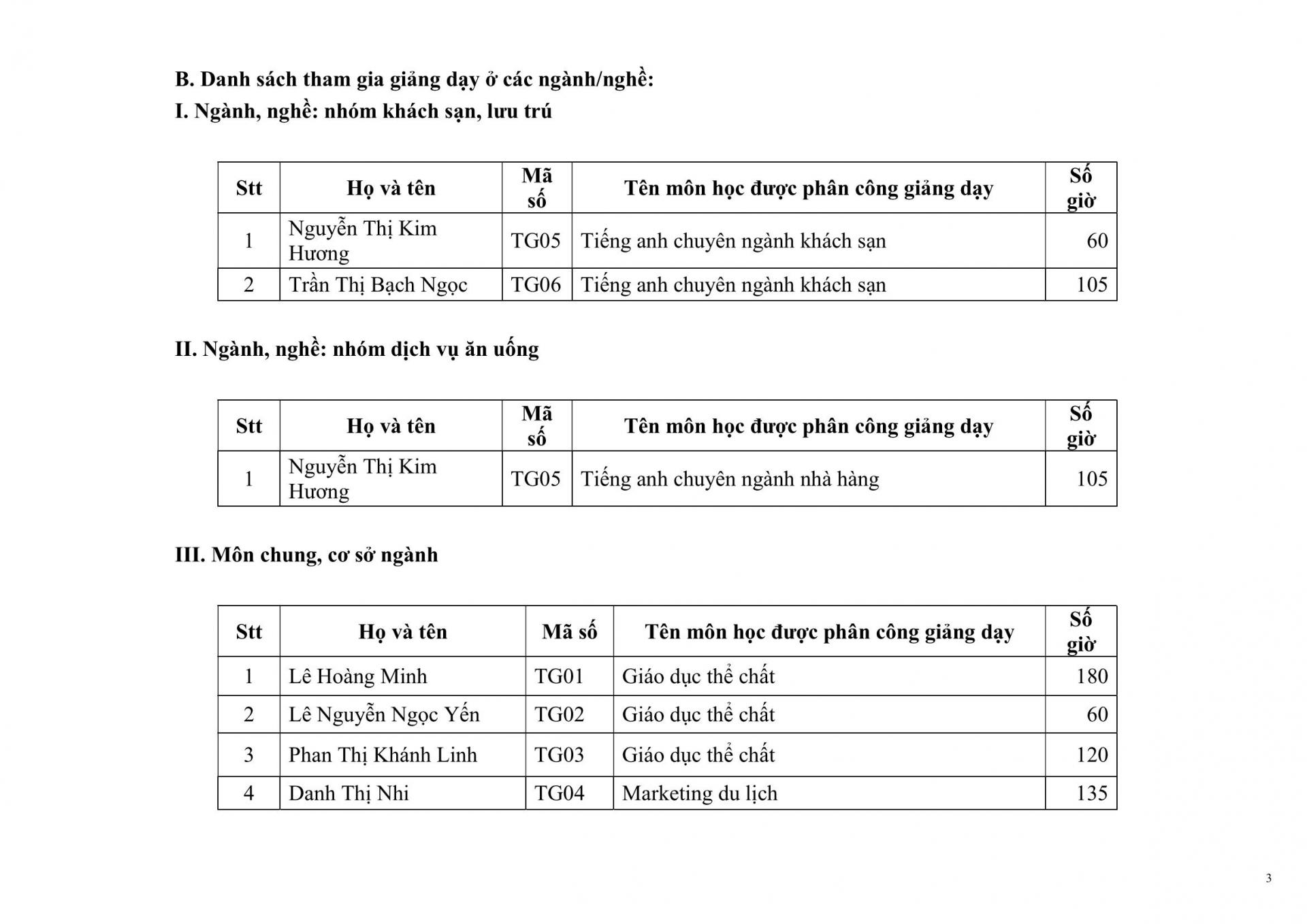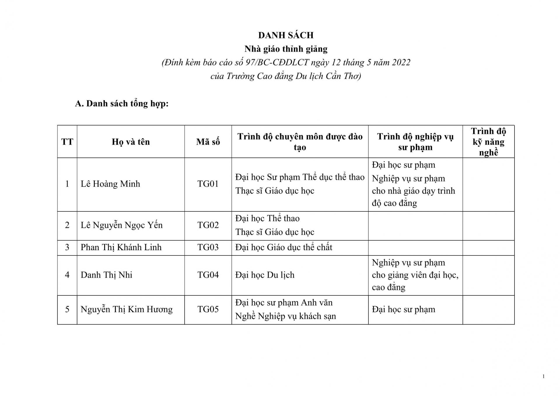 DANH SÁCH NHÀ GIÁO THỈNH GIẢNG TẠI TRƯỜNG CAO ĐẲNG DU LỊCH CẦN THƠ