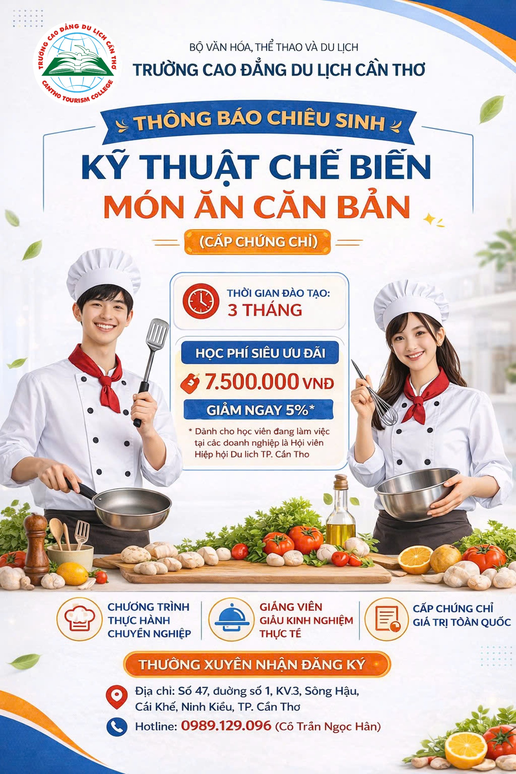 Hãy đến với lớp ngắn hạn Trường Cao đẳng Du lịch Cần Thơ - CTC, vì ở đây chúng tôi có: