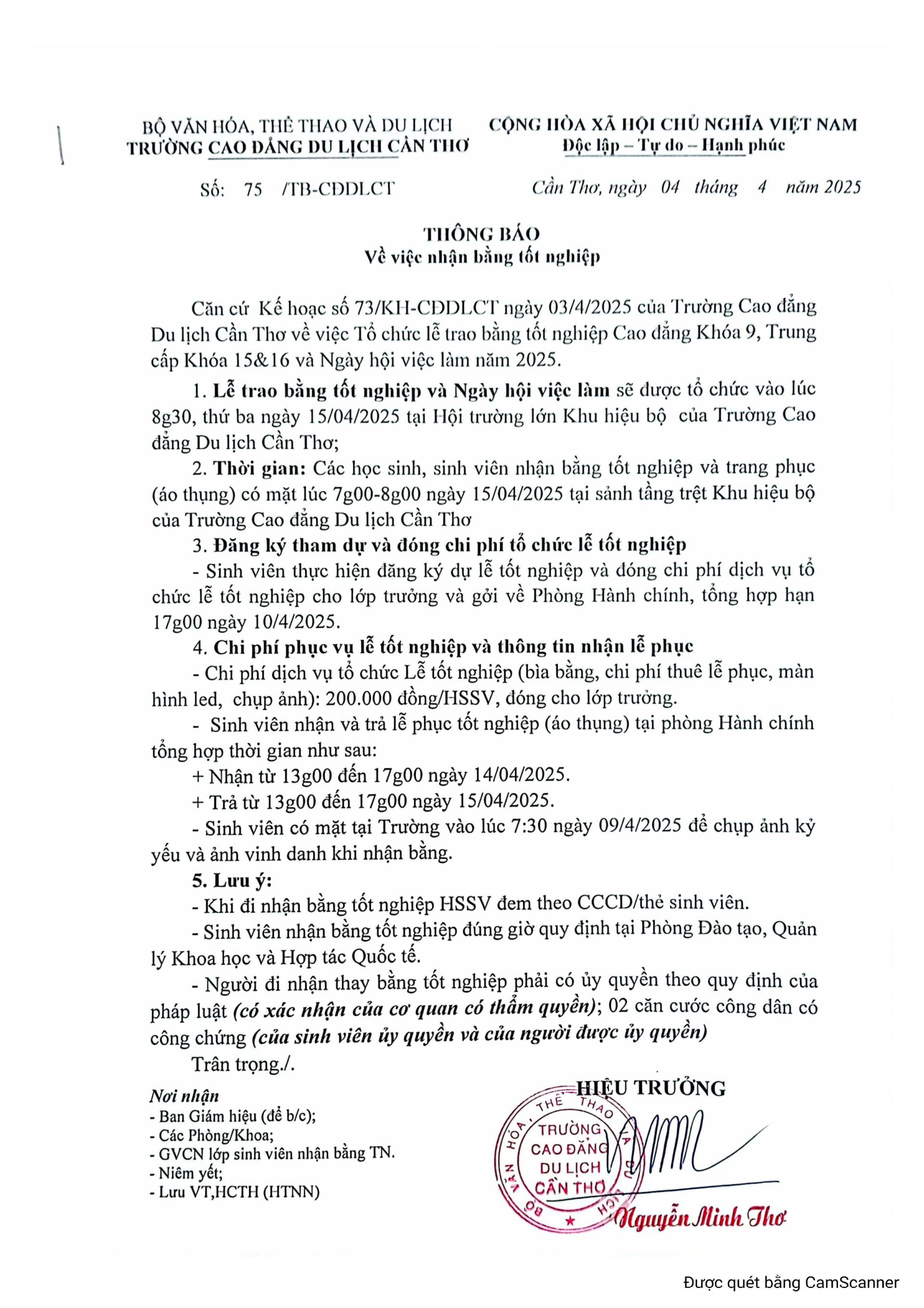THÔNG BÁO NHẬN BẰNG TỐT NGHIỆP CĐ K9, TC K15&16