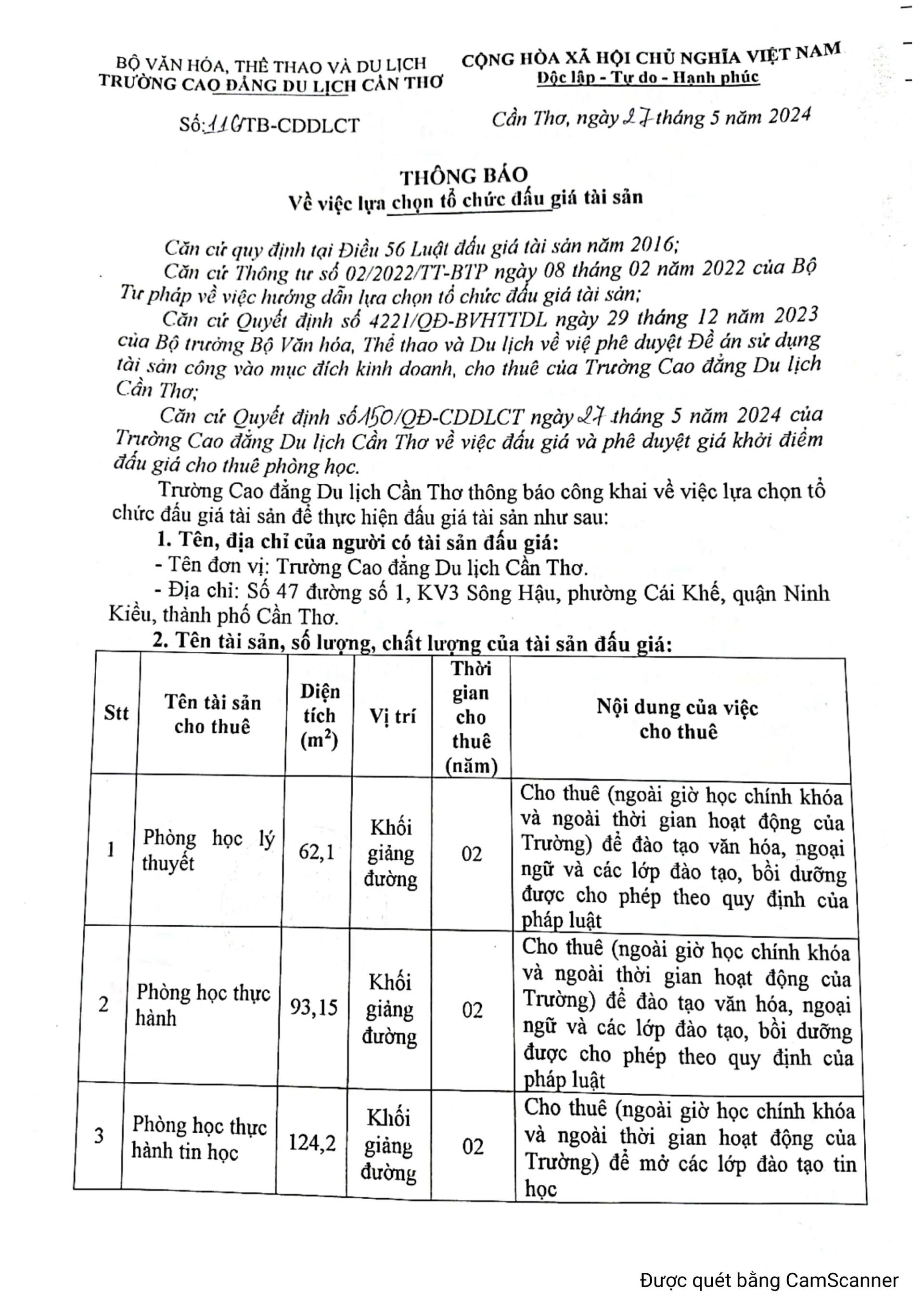 THÔNG BÁO VỀ VIỆC LỰA CHỌN TỔ CHỨC ĐẤU GIÁ TÀI SẢN