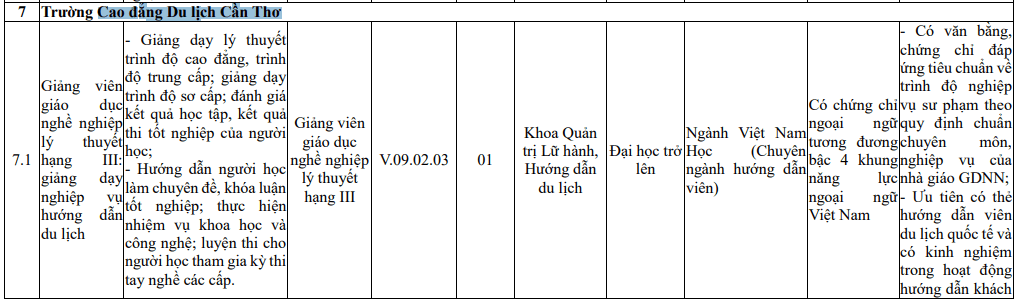 Trường Cao đẳng Du lịch Cần Thơ thông báo tuyển dụng viên chức các vị trí sau: