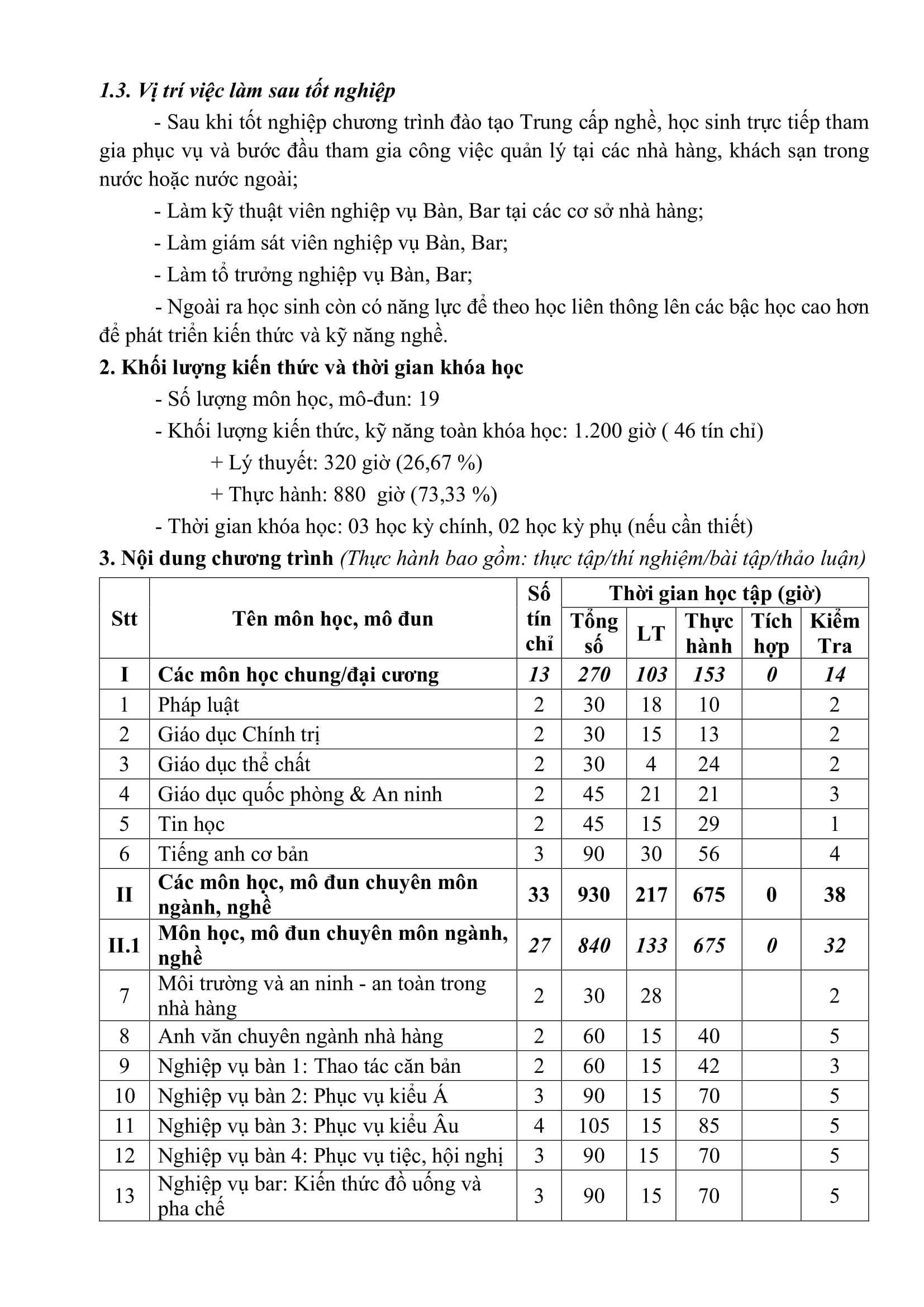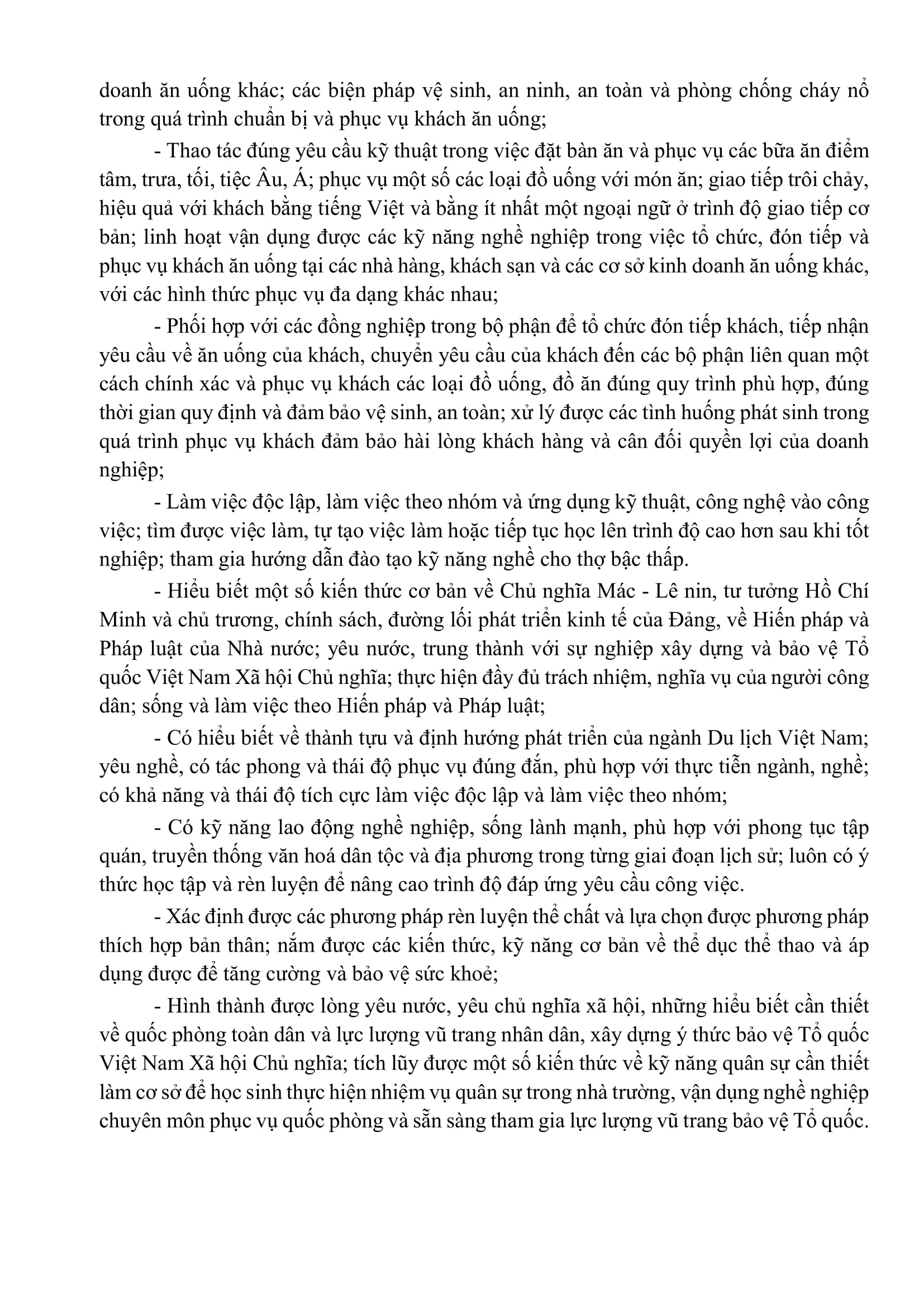 Chương trình đào tạo ngành Quản trị Nhà hàng (Cao đẳng)