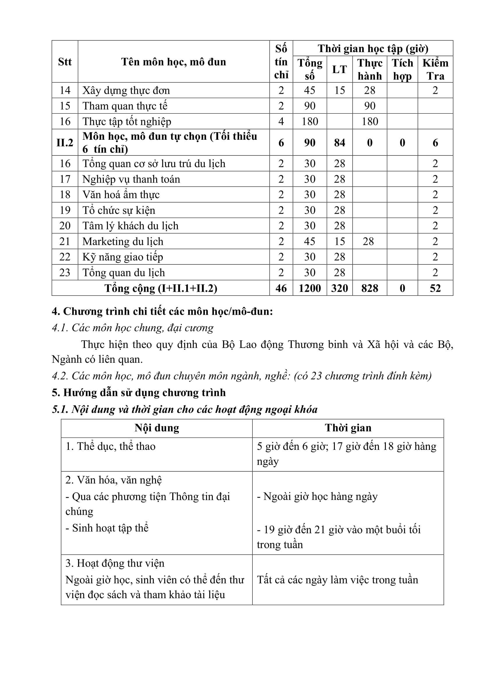Chương trình đào tạo ngành QTLH (Cao đẳng)