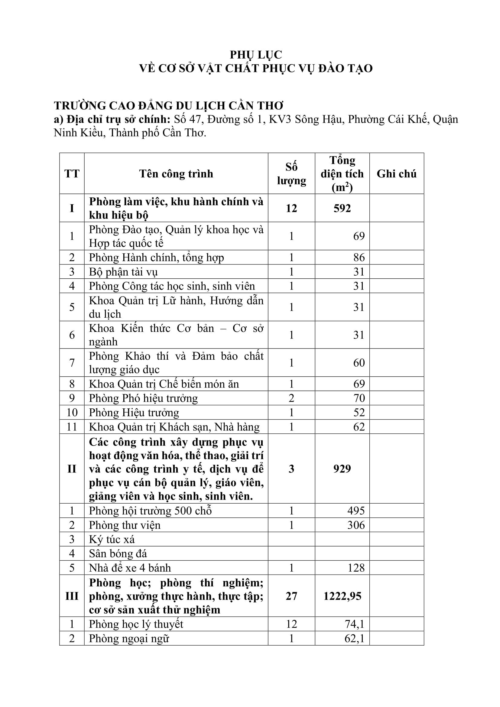 TẠI TRƯỜNG CAO ĐẲNG DU LỊCH CẦN THƠ