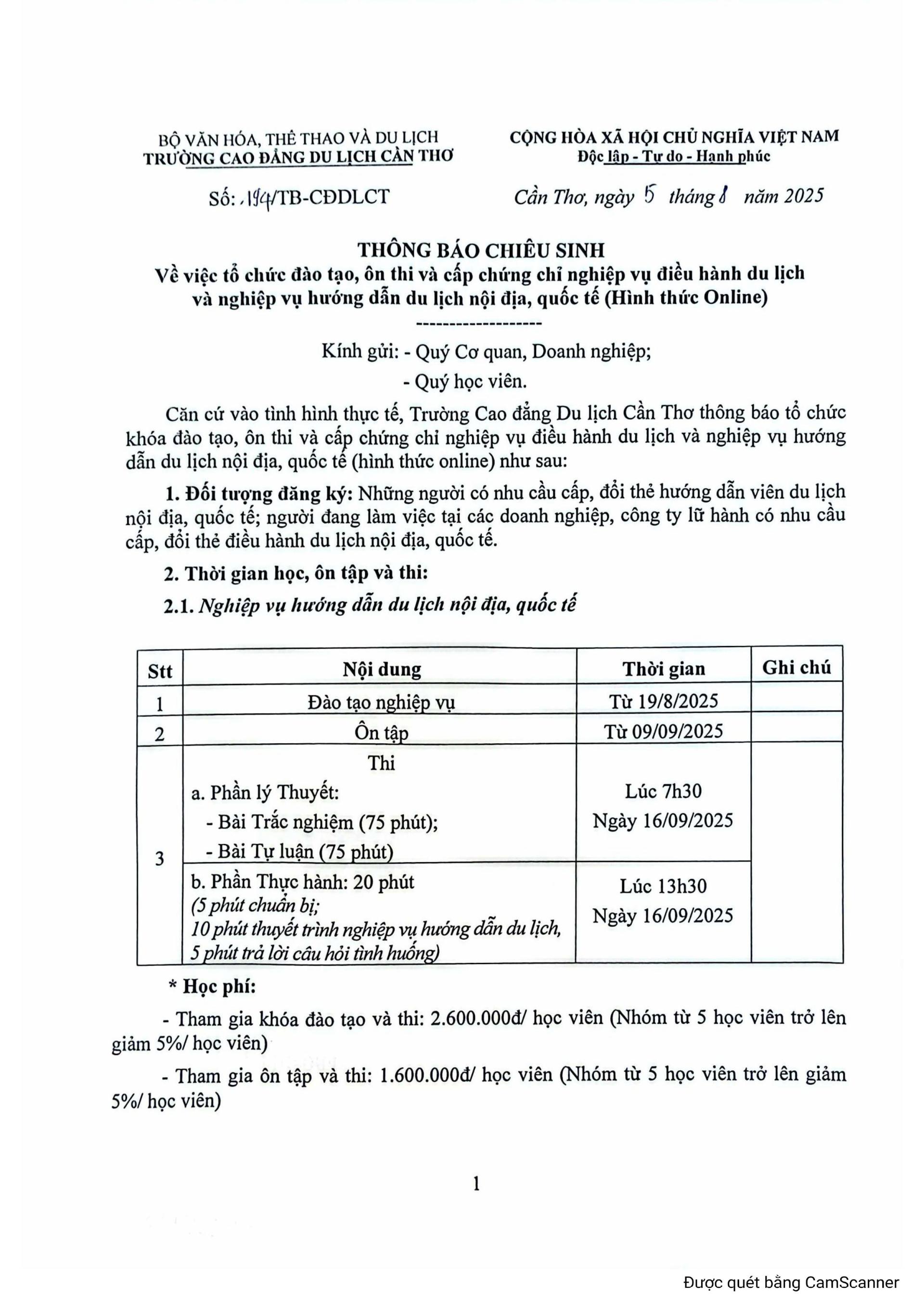 Mức phí đào tạo, ôn tập và thi: Quý học viên vui lòng xem trên thông báo để biết thêm chi tiết.