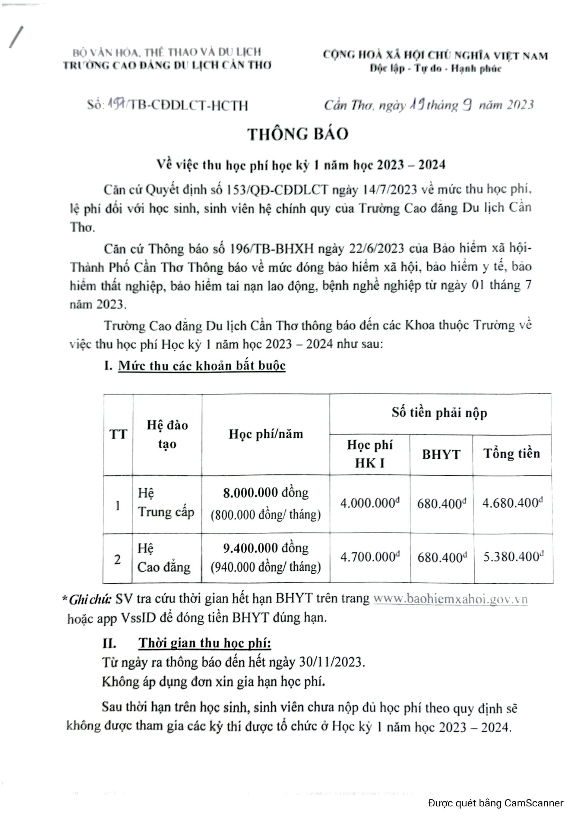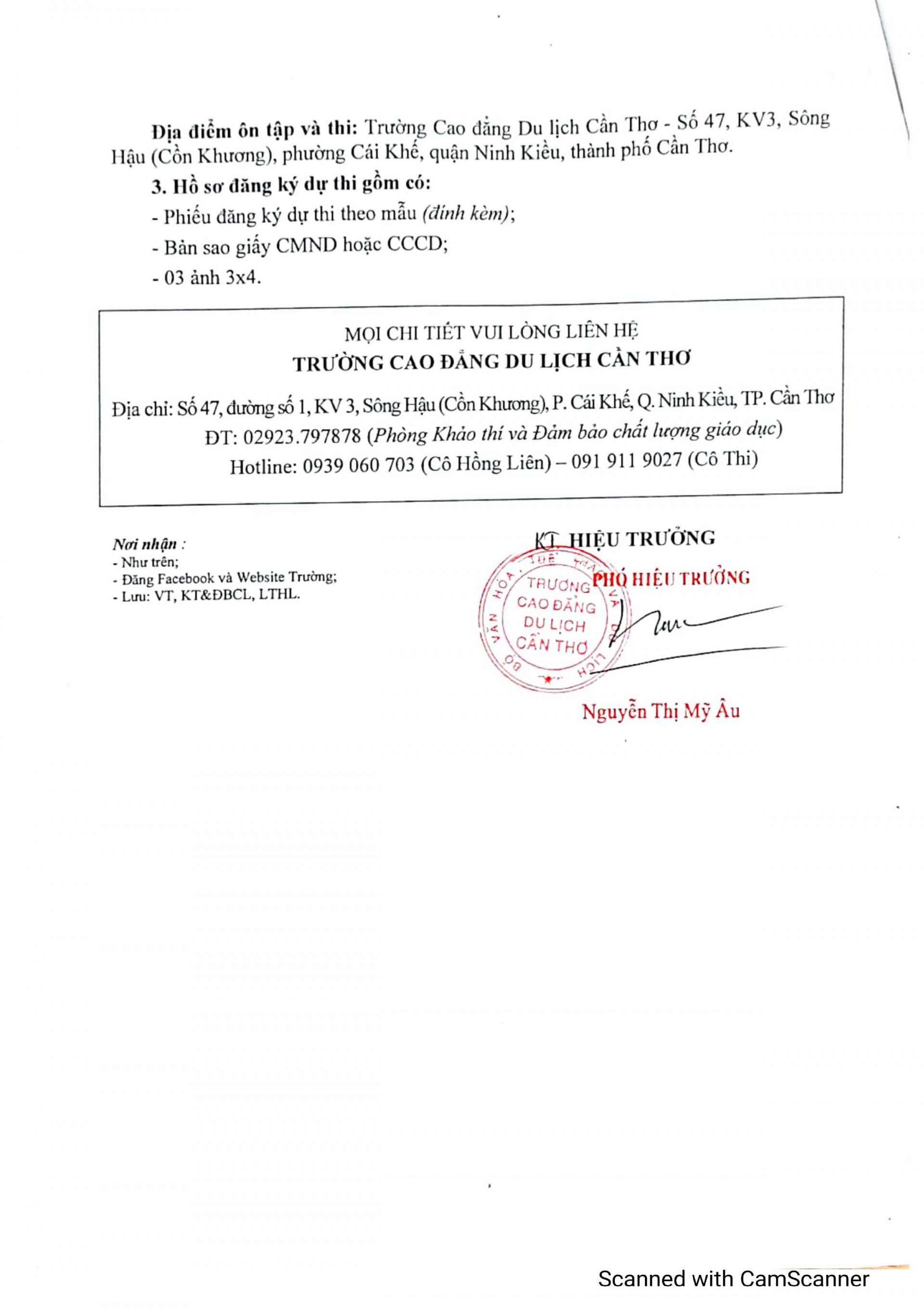 Địa điểm ôn tập và thi: Trường Cao đẳng Du lịch Cần Thơ - CTC