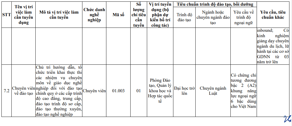 Trường Cao đẳng Du lịch Cần Thơ thông báo tuyển dụng viên chức các vị trí sau: